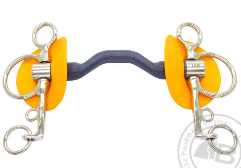 The Bomber Blue is a unique bit which produces amazing results for the majority of horses. The mouthpiece is ported to give tongue relief. The nylon composite material is light in the mouth and encourages salivation. It is particularly well suited to horses that object to metal mouth pieces.